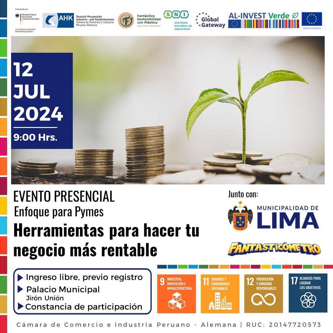 Desde la Fantástico – Sostenibilidad con Plástico, en alianza con la Municipalidad de Lima, los invitamos a nuestro próximo evento «Herramientas para hacer tu negocio más rentable»; donde descubriremos junto a expertos en desarrollo empresarial las oportunidades que existen para potenciar nuestros negocios.