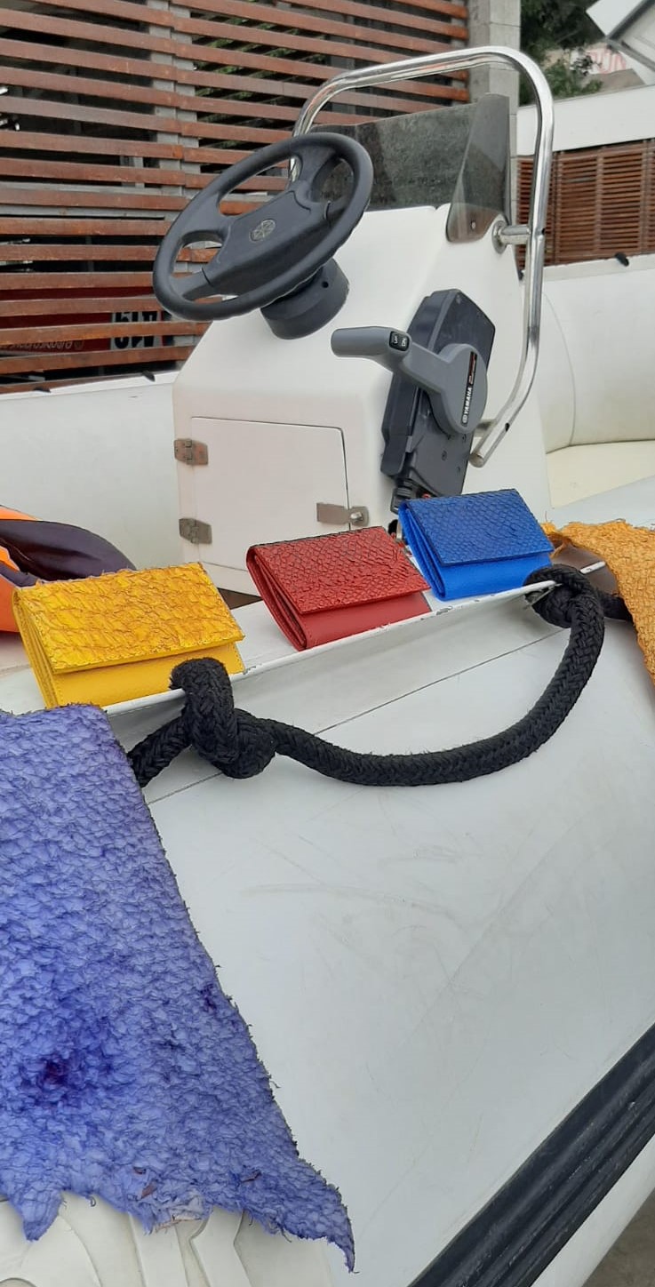 Empresa sostenible de triple impacto, que produce cuero de alta calidad utilizando los desechos de la pesca artesanal y de la acuicultura, con ese material sostenible confeccionamos diferentes productos y accesorios de moda.